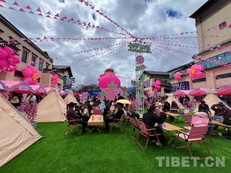 圖為游客在主會場工布天街公園“桃花嘉年華”現(xiàn)場體驗(yàn)營地。攝影:德吉卓瑪