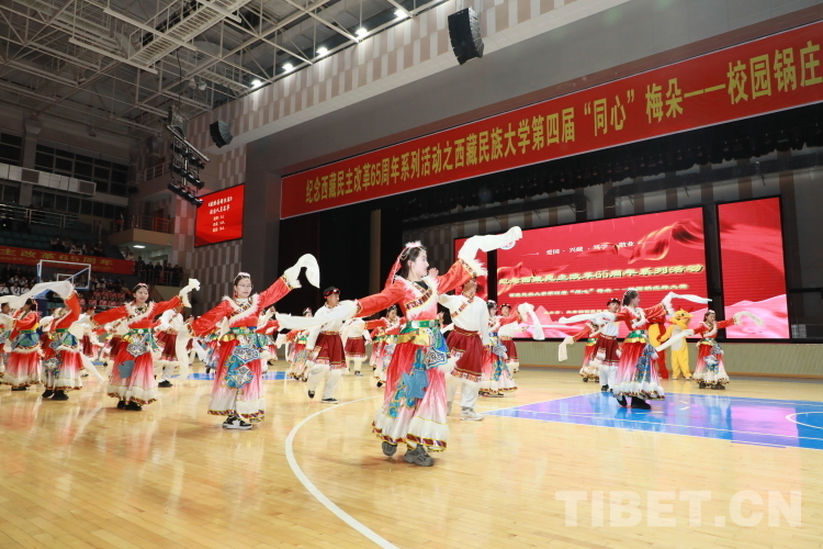 圖為西藏民族大學(xué)舉辦的第四屆“同心”梅朵鍋莊舞大賽現(xiàn)場