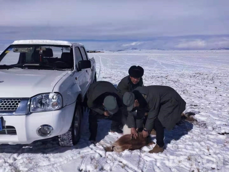 圖為扎西索朗與戰(zhàn)友們在救治野生動物(中間為扎西索朗)