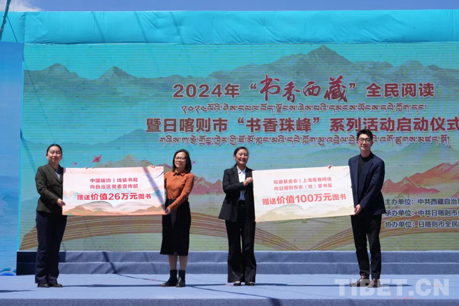 啟動(dòng)儀式現(xiàn)場,公布了榮獲首屆西藏“書香單位”“最美農(nóng)(牧)家書屋”“最美閱讀推廣人”榮譽(yù)稱號(hào)的獲獎(jiǎng)名單,并向相關(guān)代表進(jìn)行頒獎(jiǎng)授牌。中國出版協(xié)會(huì)、韜奮基金會(huì)、線裝書局有限公司及上海鷹角網(wǎng)絡(luò)科技有限公司向西藏自治區(qū)黨委宣傳部和日喀則市委宣傳部贈(zèng)書。