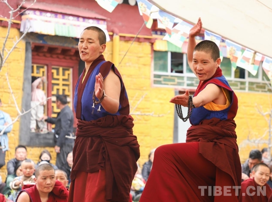 圖為尼眾辯經(jīng)現(xiàn)場(chǎng)