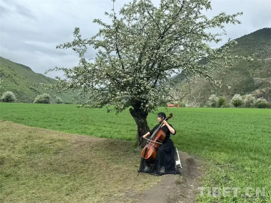 悠揚(yáng)的樂聲自林間傳來,沿著步道往深處走去,一場特別的演奏會正在進(jìn)行。枝頭海棠盛放,樹下游人如織,鋼琴、大提琴、笛子等各色樂器奏出的曲調(diào)在貢嘎海棠的映襯下更顯別樣風(fēng)味,來自西安的韓先生細(xì)細(xì)聆聽木雅傳統(tǒng)非遺口弦的演奏后不禁感嘆道,“太美了!這個活動將音樂與貢嘎海棠花海巧妙融合,讓我感受到一種別樣的人與自然共生的和諧。”
