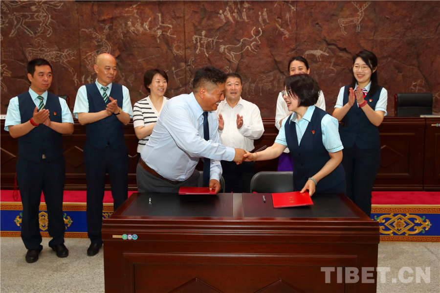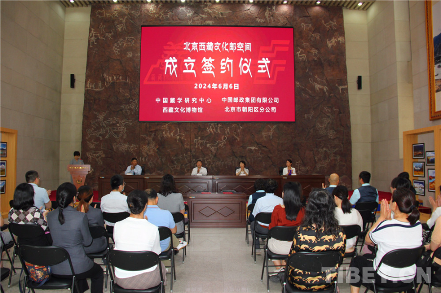 中國西藏網(wǎng)訊 6月6日,中國藏學(xué)研究中心西藏文化博物館與中國郵政集團(tuán)有限公司北京市朝陽區(qū)分公司聯(lián)合建立“北京西藏文化郵空間”合作簽約儀式在西藏文化博物館(下文簡稱“博物館”)舉行。中國藏學(xué)研究中心(下文簡稱“藏研中心”)副總干事李德成、中國郵政集團(tuán)有限公司北京市朝陽區(qū)分公司總經(jīng)理梁洪濤、藏研中心相關(guān)部門負(fù)責(zé)人出席活動。