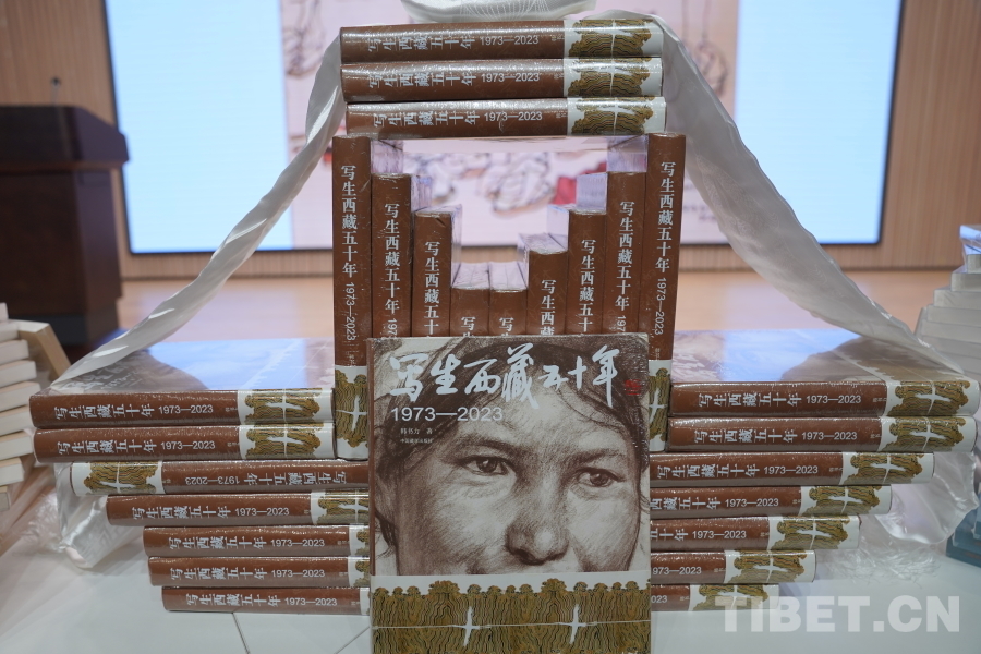 活動(dòng)現(xiàn)場,韓書力、馬麗華與中國藏學(xué)出版社向西藏多所學(xué)校、文化單位捐贈(zèng)美術(shù)、文學(xué)作品集以及中國藏學(xué)出版社系列圖書共計(jì)25000余冊,價(jià)值近200萬元。