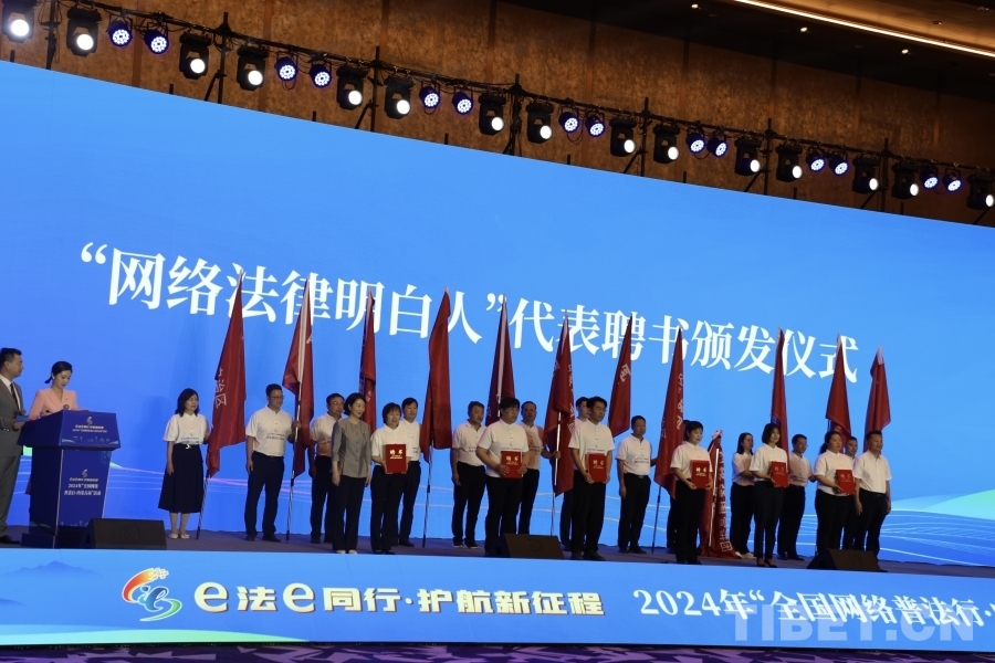 圖為向“網(wǎng)絡(luò)法律明白人”代表頒發(fā)聘書(shū) 攝影:龍真多吉