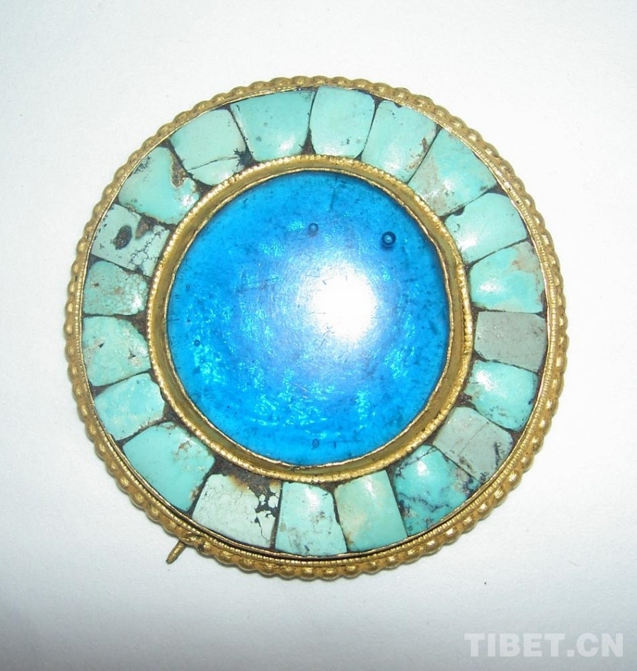 大英博物館藏19世界圓形銅鎏金鑲藍(lán)玻璃綠松石飾品(17號)