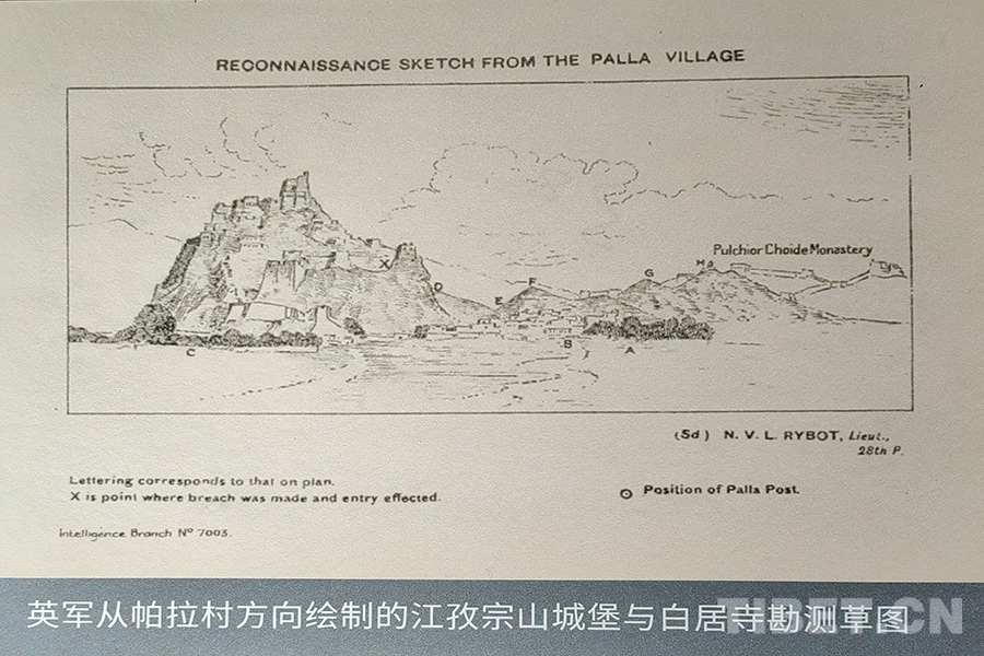 圖為英軍繪制的勘測草圖,拍攝于紀念西藏江孜抗英保衛(wèi)戰(zhàn)120周年主題展 攝影:楊月云