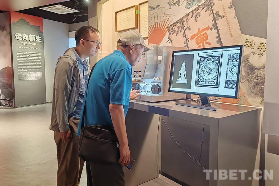 圖為紀念西藏江孜抗英保衛(wèi)戰(zhàn)120周年主題展現(xiàn)場,觀眾通過膠片機了解被英國劫掠的西藏文物 攝影:楊月云