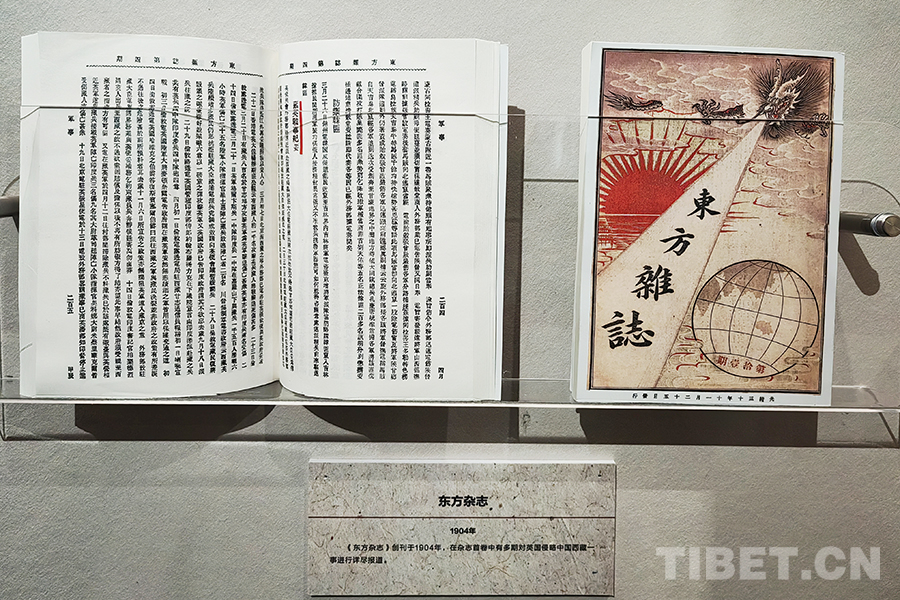 圖為創(chuàng)刊于1904年的《東方雜志》,雜志首卷對英國侵略西藏一事進行了詳盡報道。拍攝于紀念西藏江孜抗英保衛(wèi)戰(zhàn)120周年主題展 攝影:楊月云