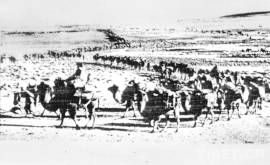 圖為1954年,青藏公路修筑大軍的駱駝運輸隊