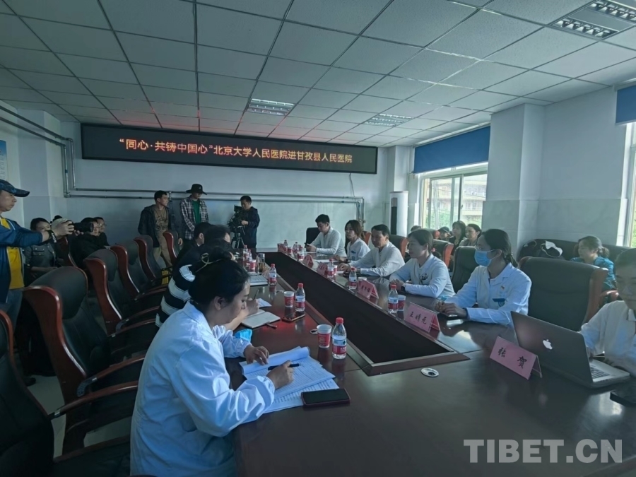 圖為北京大學(xué)人民醫(yī)院志愿者團(tuán)隊與甘孜縣人民醫(yī)院開展座談 攝影:朱鈺慧
