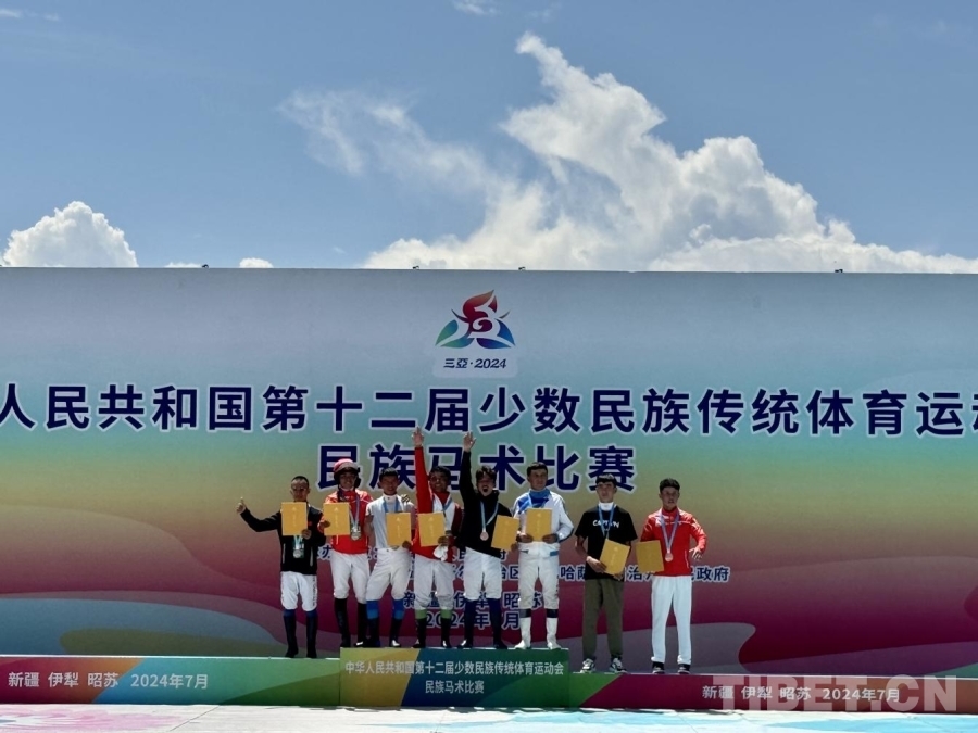 開幕式后,首個馬上項目——民族賽馬2000米比賽鳴槍起跑。經過激烈角逐,西藏代表團選手扎西平措獲一等獎、陸江峰獲二等獎、仁青倫珠獲三等獎。