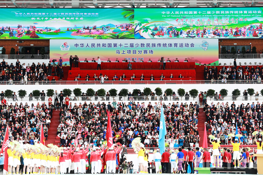 劉小明致辭說,此次馬上項目順利開賽,拉開第十二屆全國少數民族傳統(tǒng)體育運動會帷幕,奏響了民族團結樂章序曲。希望弘揚民族團結精神、中華體育精神,爭創(chuàng)佳績、以賽傳情、交流互鑒,為全國各族人民呈現一場民族文化與民族體育融合的盛宴,展現各族運動健兒團結奮進、策馬奔騰的時代風采。
