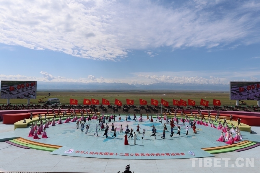 開賽儀式以“石榴花盛開 筑夢新時代”為主題進行文藝表演,“幸福歡歌”“絲路長歌”“追夢放歌”再現各民族交往交流交融的歷史畫卷,展示中華民族團結奮進、共建美好家園的時代風貌。萬馬奔騰的景象,歡快的歌舞,遼闊的草原,巍峨的天山,交匯成一幅壯麗美景。最后,全場起立高唱《歌唱祖國》,祝福偉大祖國繁榮昌盛、國泰民安。