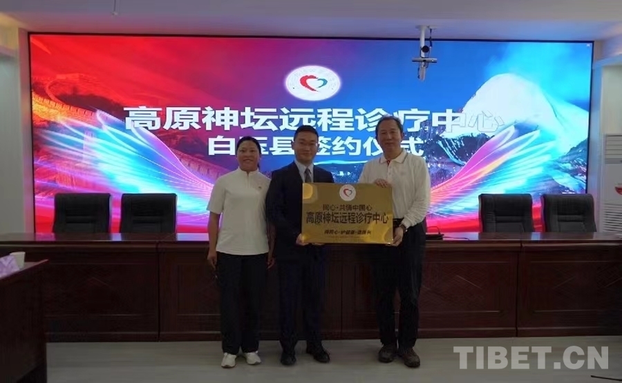 中國西藏網訊 7月8日下午,“同心·共鑄中國心”高原神壇遠程診療中心白玉縣座談會在甘孜州白玉縣人民醫(yī)院舉行。白玉縣委常委、統(tǒng)戰(zhàn)部長約來,縣衛(wèi)生健康局、縣人民醫(yī)院相關負責人,“高原神壇專項基金”專家組成員清華長庚醫(yī)院神經中心主任王貴懷、北京天壇醫(yī)院神經外科原主任魏希發(fā)、北京豐臺醫(yī)院副院長神經外科主任馬延山、國家電網北京電力醫(yī)院神經外科主任宗淼、首都醫(yī)科大學北京首鋼醫(yī)院神經外科主任高峰等出席會議。座談會期間,與會人員就“高原神壇遠程診療中心”項目進行了深入討論,簽訂了高原神壇遠程診療中心幫扶協議,并為“同心·共鑄中國心”高原神壇遠程診療中心授牌。