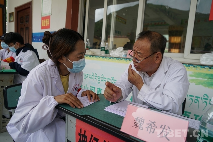在協(xié)助義診過(guò)程中,四郎曲珍聽(tīng)到很多老百姓表示醫(yī)生們不遠(yuǎn)千里從北京過(guò)來(lái),不僅辛苦為大家問(wèn)診,還免費(fèi)送藥,他們心里充滿了欣慰和感激??吹结t(yī)療專家們的盡心竭力和百姓們滿滿的獲得感,她對(duì)于這次活動(dòng)的意義,也有很深的感受?!拔矣X(jué)得同心這樣的活動(dòng)非常好。我們當(dāng)?shù)蒯t(yī)療條件有限,又因?yàn)榻煌ú荒敲捶奖?,老百姓看病很困難。有了這次活動(dòng),大家不需要大老遠(yuǎn)去找專家,也減輕了路上交通食宿等經(jīng)濟(jì)負(fù)擔(dān)。不僅如此,老師還可以一對(duì)一地指導(dǎo)我們當(dāng)?shù)氐尼t(yī)護(hù)人員,幫助我們提升醫(yī)療技能,以后可以更好地為老百姓服務(wù)。”
