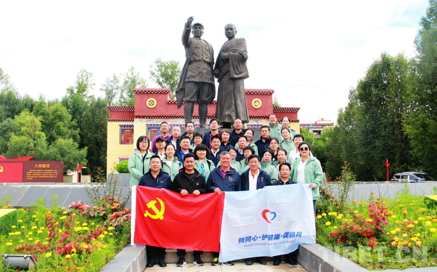圖為2024“同心·共鑄中國心”甘孜行赴四川省甘孜州甘孜縣志愿者團隊在朱德總司令和五世格達活佛雕像前砥礪初心 攝影:劉莉