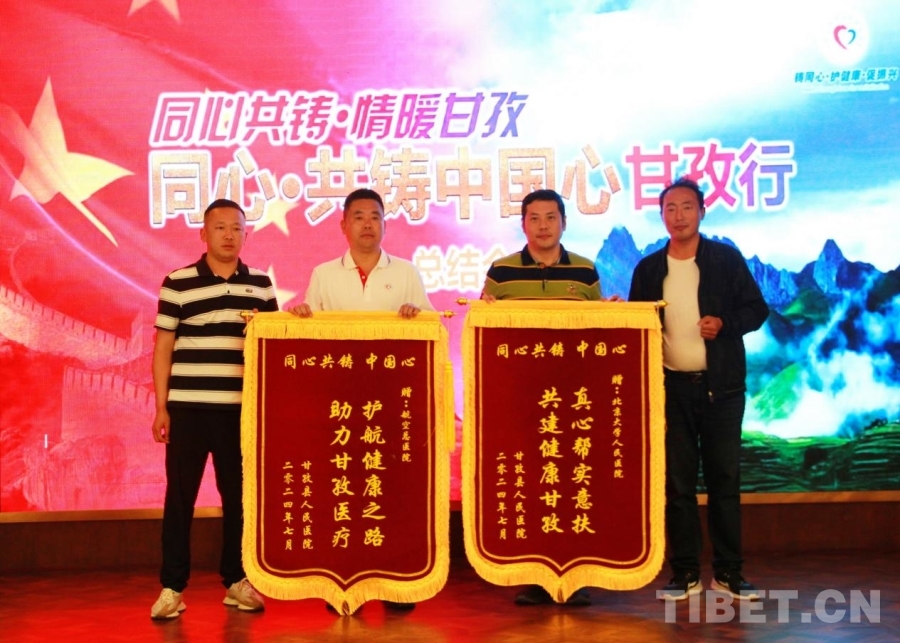 總結會上,甘孜縣有關領導向“同心·共鑄中國心”組委會贈送了錦旗,向醫(yī)療專家志愿者代表送上了感謝信;甘孜縣人民醫(yī)院向北京大學人民醫(yī)院和航空總醫(yī)院贈送了錦旗;醫(yī)療專家志愿者代表和志愿者代表分別談了活動參與感受和建言。