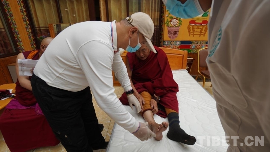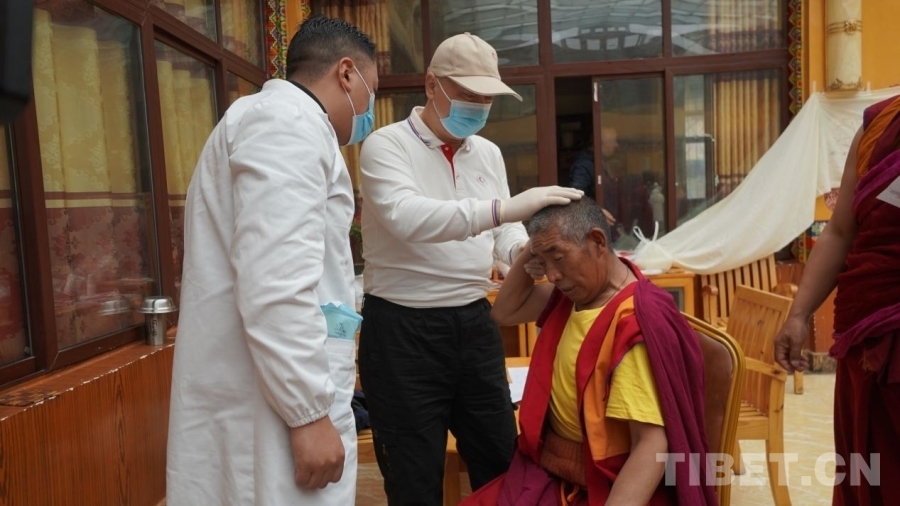 中國(guó)西藏網(wǎng)訊 7月10日,“同心·共鑄中國(guó)心”公益醫(yī)療團(tuán)隊(duì)走進(jìn)四川省甘孜藏族自治州理塘縣長(zhǎng)青春科爾寺(又名理塘寺),為寺內(nèi)僧人義診?,F(xiàn)場(chǎng)義診的專(zhuān)家們平均年齡都在四十歲以上,他們都是一邊與高原反應(yīng)抗衡一邊堅(jiān)持義診,秉承著“缺氧不能缺精神”的態(tài)度堅(jiān)持工作。