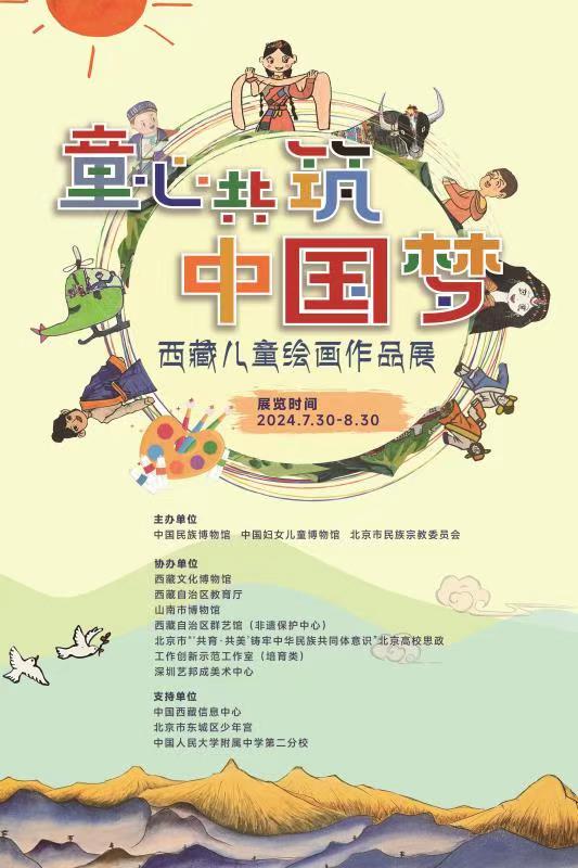 據(jù)悉,為全面推進中華民族共有精神家園建設(shè),深入實施青少年“筑基工程”,開展有形、有感、有效的民族團結(jié)進步教育,中國民族博物館與中國婦女兒童博物館積極發(fā)揮博物館公共文化教育的職能作用,連續(xù)兩年組織邊疆和內(nèi)地少年兒童以繪畫藝術(shù)為載體雙向交流,搭建平臺,舉辦“童心共筑中國夢——兒童繪畫作品展”。繼2023年新疆兒童繪畫作品展取得圓滿成功后,今年以“西藏兒童繪畫作品”為專題的活動入選國家民委“各族青少年交流計劃2024年全國試點示范項目”,并再次啟動,旨在推動各地兒童以筆寄情、以畫交友,共同打造一個各民族共事共樂的平臺,推動文旅融合與美育融合,促進各民族交往交流交融,共同譜寫中華民族共有精神家園的新篇章。