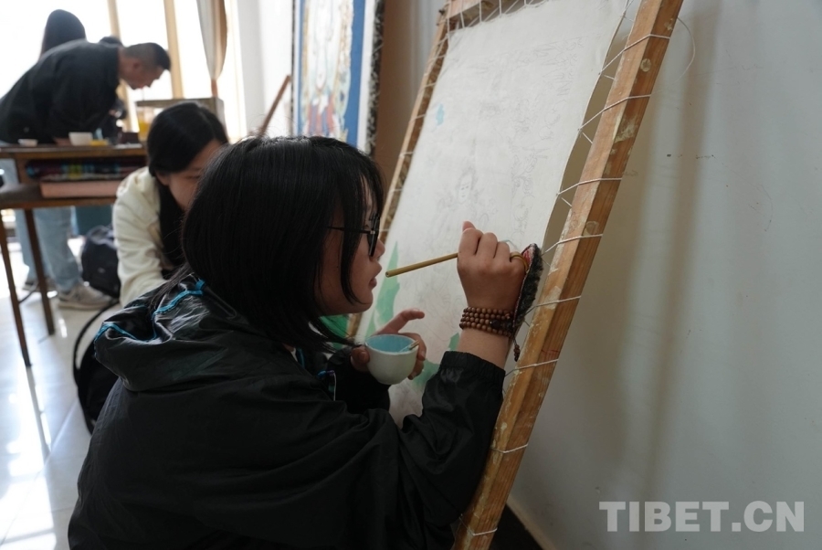 在熱貢畫院,師生們親眼目睹了畫師們的創(chuàng)作過程。畫師們?nèi)褙炞⒌乩L制著唐卡,一筆一畫間盡顯對藝術的執(zhí)著與熱愛。他們精湛的技藝和嚴謹?shù)膽B(tài)度讓大家深受觸動,更深刻地體會到了熱貢藝術的博大精深。