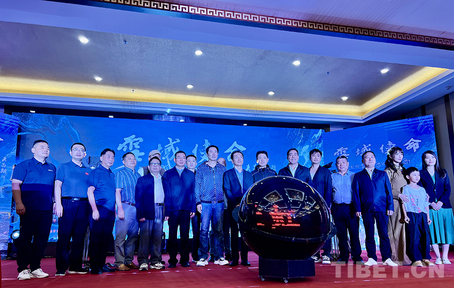 圖為《雪域使命》主要演員同與會嘉賓共同舉行開機揭幕儀式并合影留念 攝影:德吉卓瑪