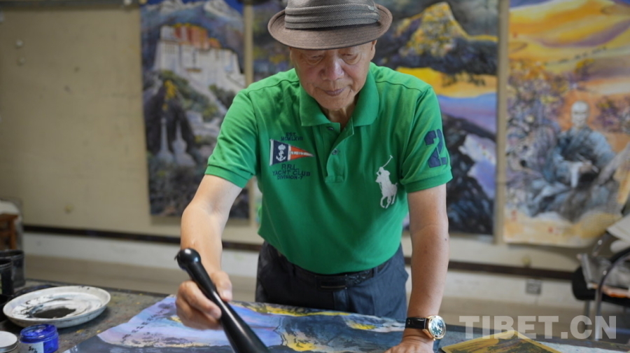 圖為尼瑪澤仁正在繪畫 攝影:陳浩力