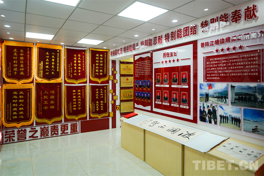 在普瑪江塘邊境派出所,“精神力量”永遠(yuǎn)比“榮譽(yù)之墻”更加重要。一面面錦旗掛滿了墻壁,卻將“榮譽(yù)之巔責(zé)更重,頂峰之處旗更紅”寫在錦旗之下;墻上的每一張照片都是一段不可抹去的記憶,卻將“特別能吃苦、特別能戰(zhàn)斗、特別能忍耐、特別能團(tuán)結(jié)、特別能奉獻(xiàn)”的“老西藏精神”高懸照片之上。