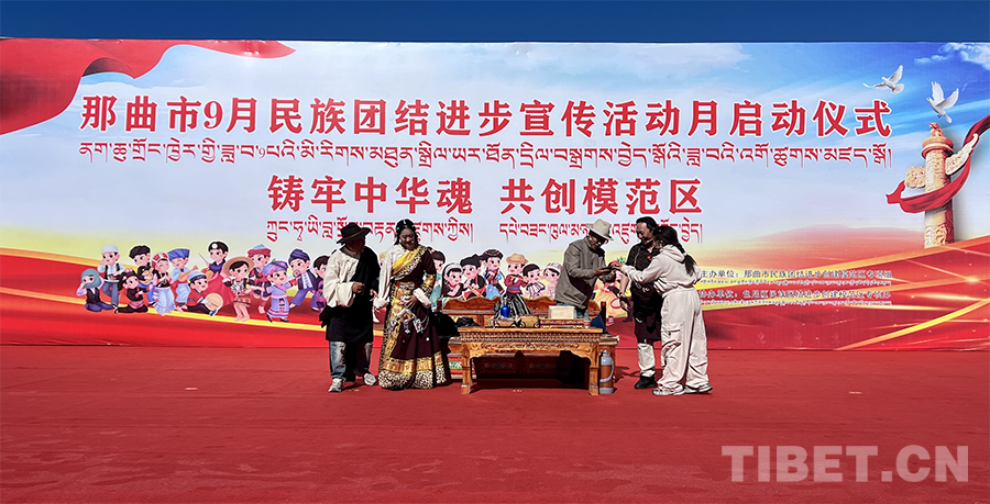 啟動儀式結(jié)束后,色尼區(qū)文藝團為現(xiàn)場觀眾獻上了那曲市民族團結(jié)進步主題歌曲《我們的和美羌塘》《羌塘普古》《國旗下的牧民》等一系列精彩的文藝表演。其中,《羌塘普古》以其別具特色的藏族舞蹈,展現(xiàn)了那曲高原的壯麗與人民的豪邁;小品《中華民族一家親》通過生動的故事情節(jié)和真摯的情感表達,深刻詮釋了中華民族多元一體的文化內(nèi)涵和各民族之間血濃于水的深厚情誼。現(xiàn)場笑聲不斷、氣氛活躍、熱鬧非凡,充分展示了那曲市民族團結(jié)進步的良好氛圍。(中國西藏網(wǎng) 記者/楊加才讓 旦曲)