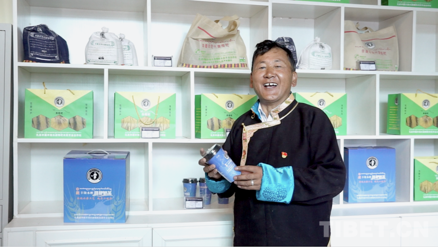 圖為申藏村黨支部書(shū)記旺扎正在介紹糌粑產(chǎn)品 攝影:邊子捷