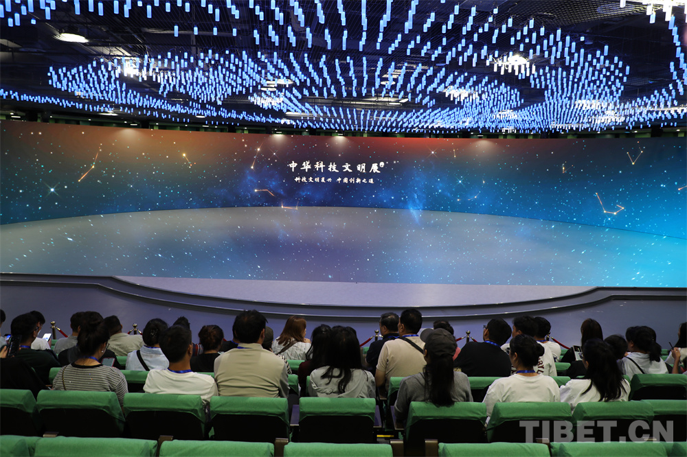 圖為西藏自治區(qū)科技專干進京考察學習團參觀中國科學家博物館,觀看中華科技文明展短片 攝影:王茜
