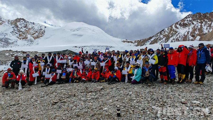 圖為運(yùn)動(dòng)員們登頂成功后手舉證書合影留念 攝影:馮重霖