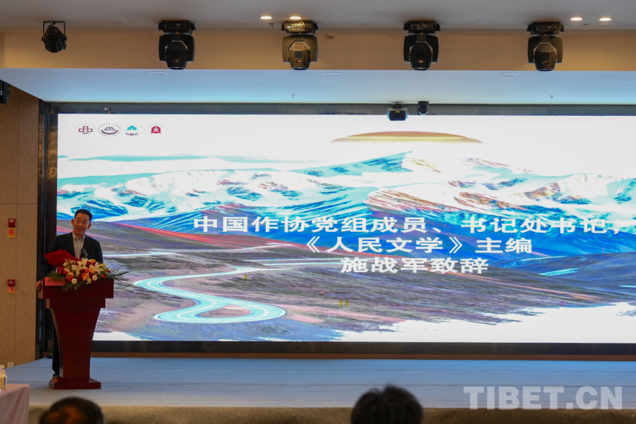 圖為長(zhǎng)詩《喜馬拉雅》作者,第八屆魯迅文學(xué)獎(jiǎng)獲得者、西藏自治區(qū)文聯(lián)副主席陳人杰致辭 攝影:邊子捷