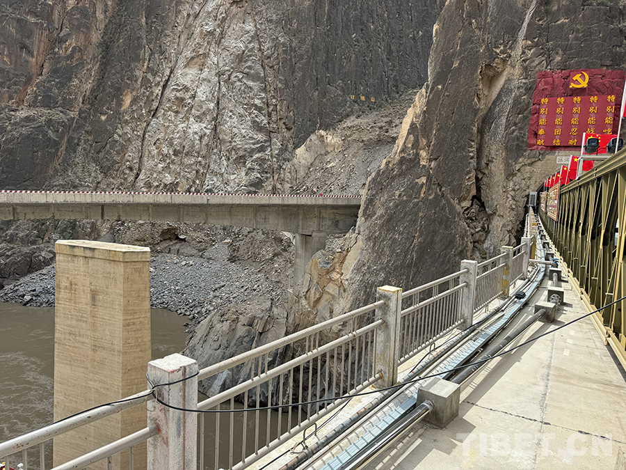 據(jù)昌都市八宿縣文旅推介員達(dá)瓦卓瑪介紹,第一代怒江大橋是貝雷橋,使用的是當(dāng)時軍隊(duì)快速建橋的方法,由鋼架組成箱體架設(shè)而成。1953年6月,筑路部隊(duì)到達(dá)怒江東岸,剛好是八宿縣的雨季,怒江水勢洶涌,有很多的暗流、深灘。筑路部隊(duì)先后4次渡江,以犧牲多人的代價,連接了東西兩岸。
