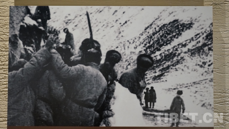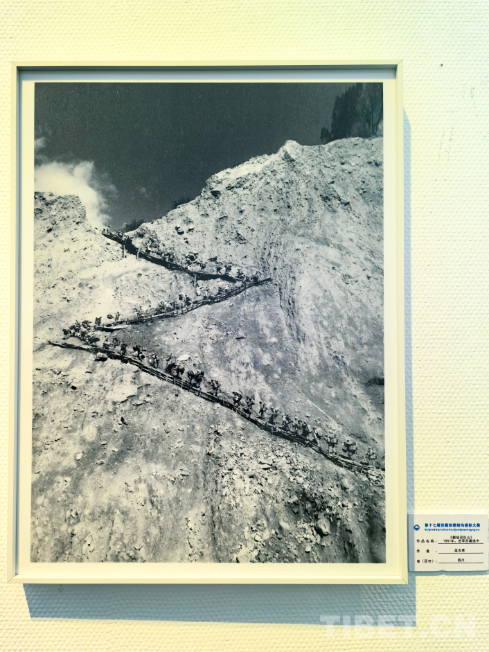 圖為第17屆西藏珠穆朗瑪攝影大展展出的藍(lán)志貴于1951年進(jìn)軍西藏途中所拍攝的《翻越泥巴山》 翻拍:王淑