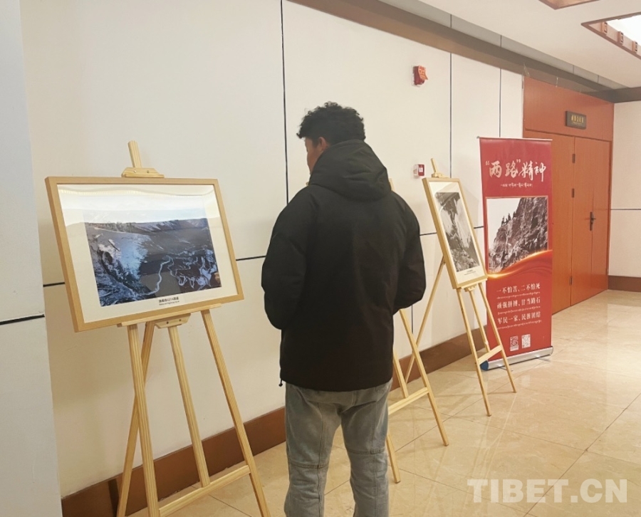 中國西藏網(wǎng)訊 10月24日,傳承弘揚“兩路”精神暨鑄牢中華民族共同體意識研討會在拉薩舉辦。研討會在會場外長廊布置了以“兩路”為主題的圖片展。通過一幅幅圖片,與會人員更加直觀地了解了“兩路”精神的內(nèi)涵和“兩路”建設(shè)的艱辛歷程,以及西藏交通發(fā)展的成果。(中國西藏網(wǎng) 記者/王茜 巫珊燕 陳浩力 蘭周加)