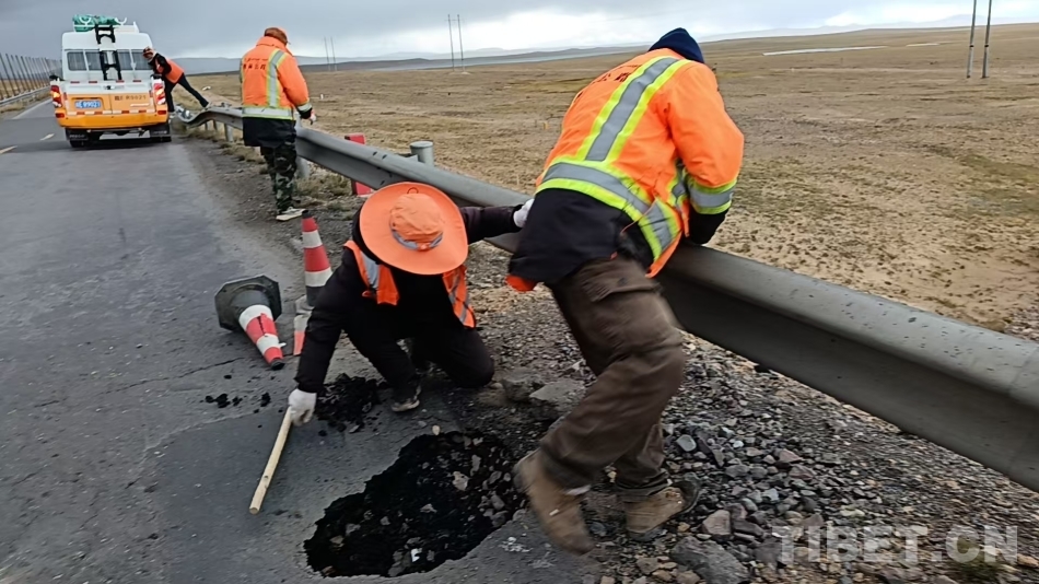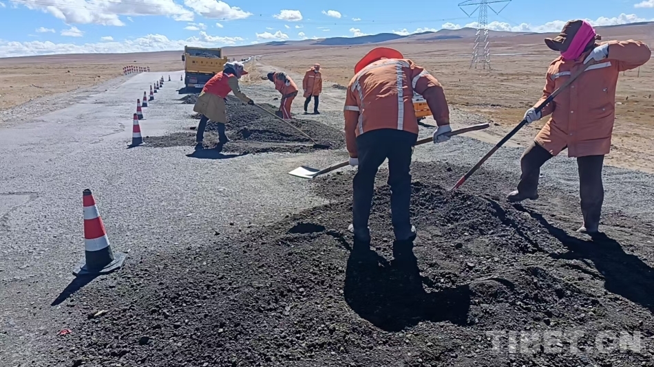受低溫限制,唐古拉山路段的油路養(yǎng)護(hù)季節(jié)性非常強(qiáng),每年的5至10月是養(yǎng)護(hù)的黃金時(shí)間。為了能在有限的時(shí)間內(nèi)更好地養(yǎng)好公路,每年這個(gè)季節(jié),我和工友們都要在凌晨四五點(diǎn)出發(fā),一絲不茍地進(jìn)行日常巡查,對(duì)破損的路面進(jìn)行及時(shí)修補(bǔ)。每天工作超過(guò)十個(gè)小時(shí),餓了吃些糌粑,渴了喝點(diǎn)酥油茶,累了就靠在車上休息一會(huì)兒。春天,我們處理路面裂縫;夏天,我們清理塌方;冬天,我們與冰雪戰(zhàn)斗。我們?nèi)硇耐度?,用青春和汗水守護(hù)這條公路,確保這條至關(guān)重要的運(yùn)輸動(dòng)脈能夠抵御極端惡劣氣候的考驗(yàn),讓每一輛過(guò)往車輛都能安全順暢通行。