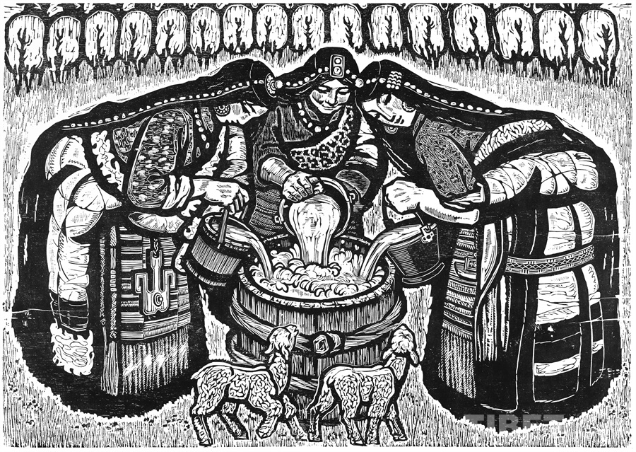 這些年來(lái)可以肯定的是我的創(chuàng)作道路和方向是基本對(duì)頭的。前幾年有人寫文章評(píng)論說(shuō),在外來(lái)思想影響已很豐富、多元化格局已經(jīng)形成的情況下,差不多只有版畫還恪守著現(xiàn)實(shí)主義的創(chuàng)作道路,而且在美術(shù)領(lǐng)域起到了導(dǎo)向作用。順便為版畫說(shuō)句話:搞版畫的人一直尊重生活,認(rèn)定生活是第一性的,版畫一開始就是在革命的環(huán)境中發(fā)生、發(fā)展起來(lái)的。版畫隨著四大發(fā)明發(fā)源于中國(guó)的土壤,后來(lái)被歐洲發(fā)展了,反過來(lái)又影響到中國(guó)。老大的中國(guó)有發(fā)明權(quán),但并沒有把它發(fā)展起來(lái)。魯迅先生為了推動(dòng)版畫的發(fā)展,特別介紹了德國(guó)版畫和俄羅斯版畫為代表的版畫代表作和代表人物,還有美國(guó)的肯特,比利時(shí)的麥綏萊爾。介紹文字很精彩,無(wú)論對(duì)生平、對(duì)作品的介紹都很精彩。他推出的那些版畫大師,至今仍巍然屹立在美術(shù)史上。他對(duì)版畫的深刻而獨(dú)到的理解很可貴。國(guó)外有些不很知名但有好作品的,他也介紹到。而且給我們指出哪些是范本,我們一看果然耳目一新。魯迅先生的提倡影響了中國(guó)版畫的發(fā)展,進(jìn)入了一個(gè)嶄新的階段,形成所謂新興版畫。這段時(shí)間并不長(zhǎng),也就六七十年吧。版畫統(tǒng)領(lǐng)潮流,面向生活的潮流。所以它的路子就很正,這個(gè)正就是正統(tǒng),一直發(fā)展得很健康。我從小就受影響,我當(dāng)時(shí)所看到的版畫都是反映民間生活的東西:戰(zhàn)爭(zhēng)年代反映民間的疾苦與災(zāi)難,和平年代反映民眾的感情和生活,所表現(xiàn)的風(fēng)景也由平常人眼中投射。一句話就是為人民服務(wù)指導(dǎo)下的藝術(shù)創(chuàng)作。如果問我的作品和生活的距離有多大,可說(shuō)距離是小的,并未受到更多潮流的干擾,并未背離為人民服務(wù)的方向。正因如此,我要把西藏題材表現(xiàn)好,表現(xiàn)在一個(gè)理想的藝術(shù)高度上,而且這一高度還能讓一般欣賞者達(dá)到。我的理想就是這樣,要達(dá)到這一目標(biāo)看來(lái)還很費(fèi)勁。
