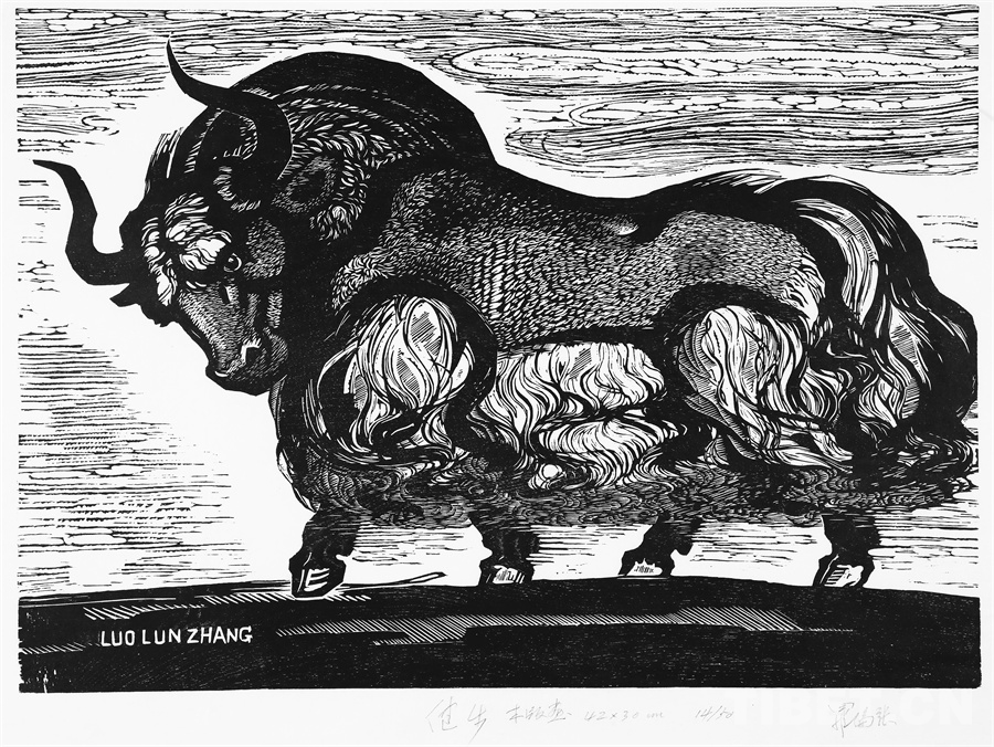 如果非要說(shuō)我在版畫技法上有什么創(chuàng)新,參照西藏匠人刻經(jīng)文,在石頭上刻出來(lái)然后印出來(lái)也許就算。這不是一般石版畫概念,那叫石印,平版印刷;我這是凹版印刷??唐饋?lái)很費(fèi)勁,我也不管費(fèi)不費(fèi)勁。我有一批這樣的石刻作品。綜合版作品手法較多,我通常分別在石板和木板上刻,然后套起來(lái)印。如果搞學(xué)術(shù)交流,也許值得一談。至于說(shuō)到創(chuàng)新,第一我不認(rèn)為我有什么創(chuàng)新,第二我不認(rèn)為在藝術(shù)上、在美術(shù)上能夠輕易談創(chuàng)新這個(gè)詞。還有第三個(gè)觀點(diǎn):不需要?jiǎng)?chuàng)新。很簡(jiǎn)單,你先把傳統(tǒng)學(xué)到手再說(shuō)。既是傳統(tǒng),就有它的存在理由,否則早就夭折了,還傳什么統(tǒng)呢?傳,而且統(tǒng)??!統(tǒng)是什么意思?基調(diào)是它統(tǒng)一起來(lái)的。先把傳統(tǒng)學(xué)到手,爐火純青了,神來(lái)之筆出現(xiàn)了,才有可能有所創(chuàng)造?;A(chǔ)是重要的。