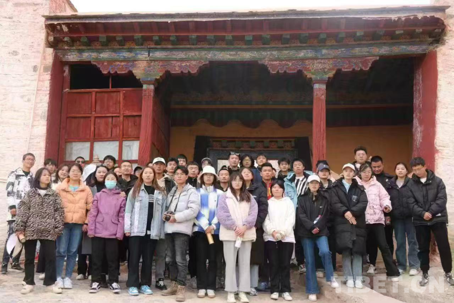 圖為張艾平帶領學生在西藏自治區(qū)日喀則市江孜縣帕拉莊園研學
