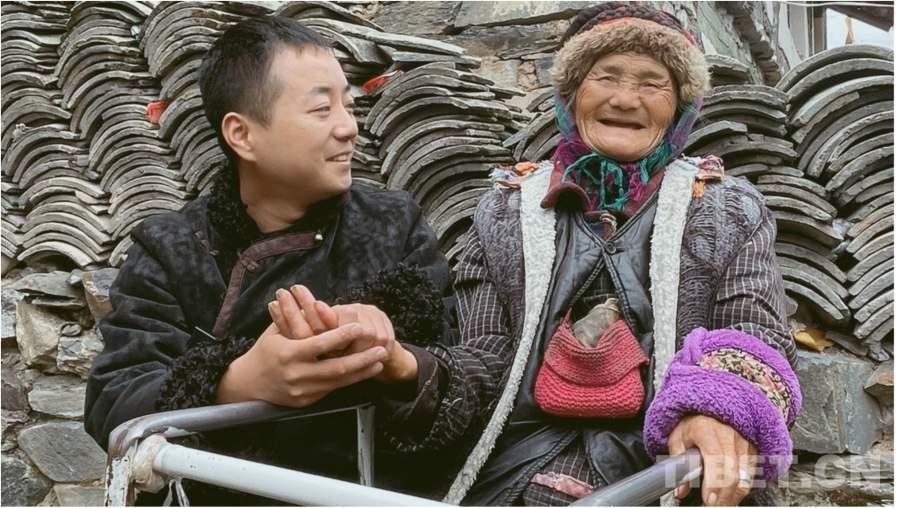 第二個老師是兩腿癱瘓的獨居藏族老人斯達木,是楊斐在第一次下鄉(xiāng)時遇到的。老人耐心教楊斐藏語,楊斐給老人帶去了輪椅、拐杖、紙尿褲等生活用品,兩人感情日漸深厚,他認斯達木老人當了干媽。
