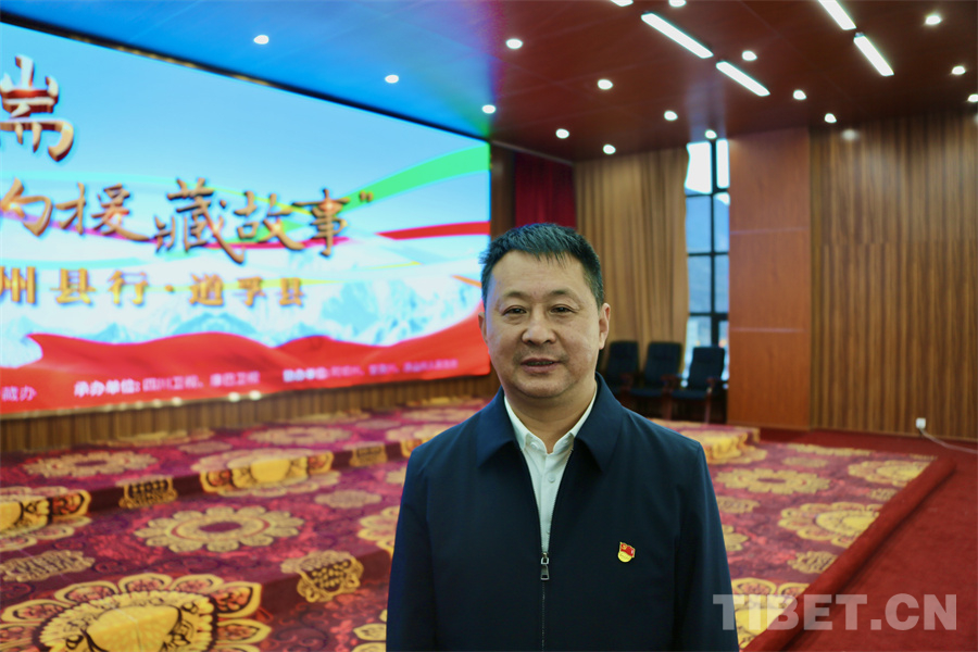 圖為道孚縣委常委、副縣長、成都市郫都區(qū)第七批對口支援工作隊領隊劉彥君接受記者采訪 攝影:龍真多吉