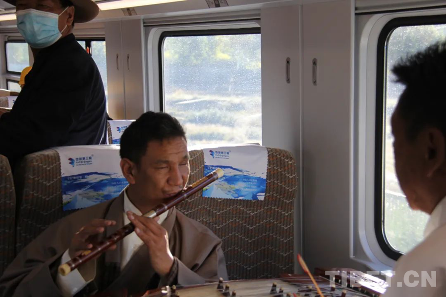 圖為在拉林鐵路開通運(yùn)營(yíng)1周年之際,“咔噠嘎布”樂隊(duì)受邀在高原復(fù)興號(hào)上表演