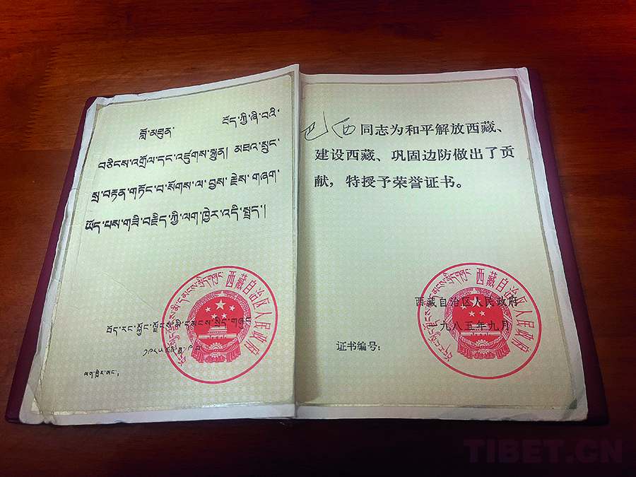 圖為西藏自治區(qū)人民政府授予巴西老人的證書