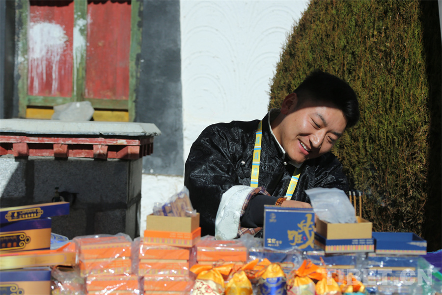 圖為市民游客在集市選購文創(chuàng)產(chǎn)品。攝影:德吉卓瑪