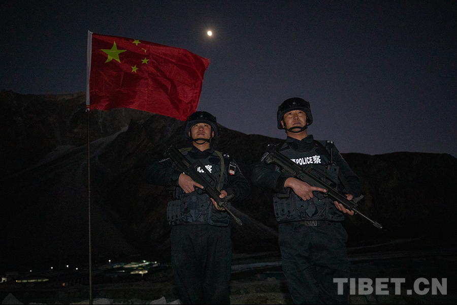 圖為西藏出入境邊防檢查總站色邊境派出所移民管理警察在公漳浦執(zhí)勤點(diǎn)月光下執(zhí)勤