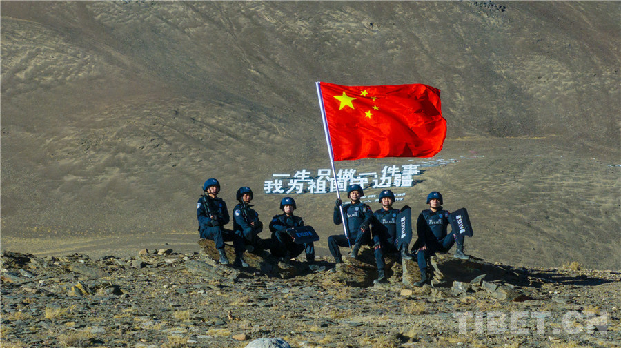 圖為涅如邊境派出所民警和“一生只做一件事 我為祖國守邊疆”大字合影