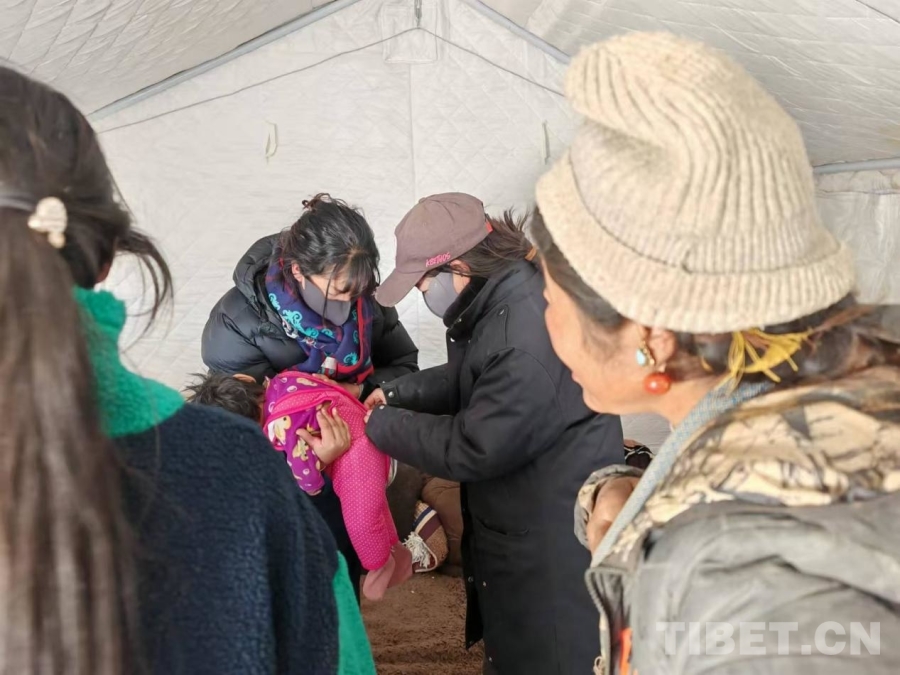 找到了!旦珍的家人懸著的心雖然放下了,但震區(qū)余震不斷,情況復(fù)雜,從聶孜村到木隊村,有130余公里的遙遠路途,家里又沒有車,這讓旦珍的家人們犯了難。多布扎鄉(xiāng)黨委、政府了解到這一情況后,立即決定派人驅(qū)車前往災(zāi)區(qū)接回寶寶并妥善安置到其奶奶家中。經(jīng)多方聯(lián)系協(xié)調(diào),在聶孜村駐村工作隊隊員的陪同下,1月7日16時50分,寶寶與奶奶在木隊村搭建的救災(zāi)帳篷里成功會合,1月8日18時平安地返回了聶孜村家中。