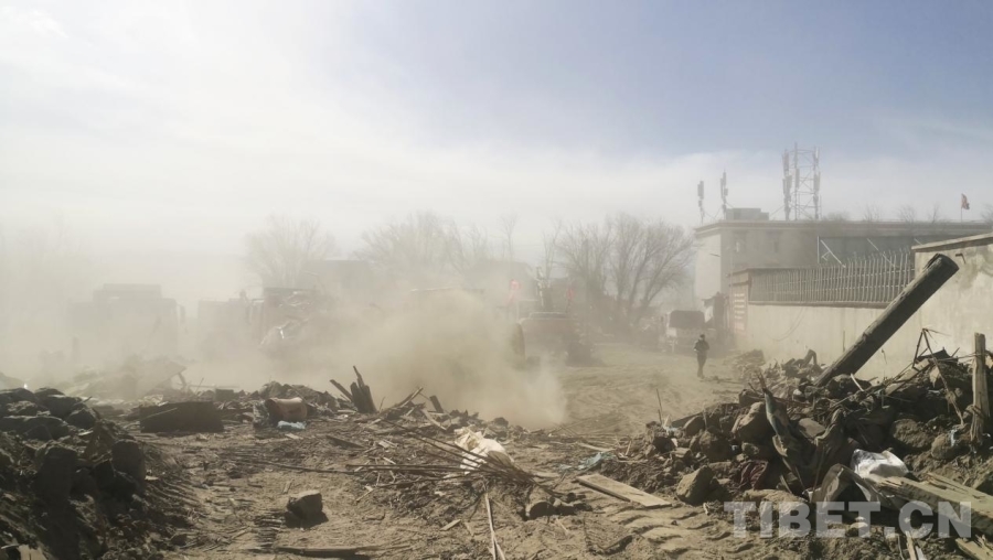 圖為地震重災(zāi)區(qū)西藏自治區(qū)日喀則市定日縣長(zhǎng)所鄉(xiāng)除險(xiǎn)現(xiàn)場(chǎng),畫(huà)面中右側(cè)的危房、建筑已完成除險(xiǎn) 攝影:劉莉