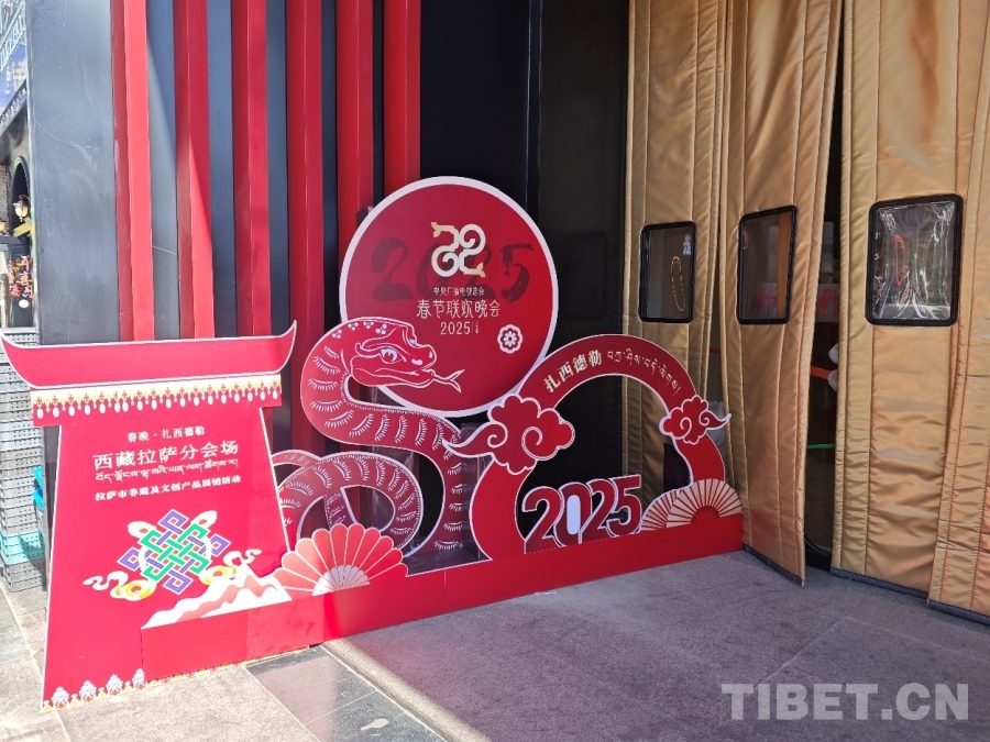 圖為拉薩某商場(chǎng)門口擺放的春晚標(biāo)識(shí)牌 攝影:趙婧茹